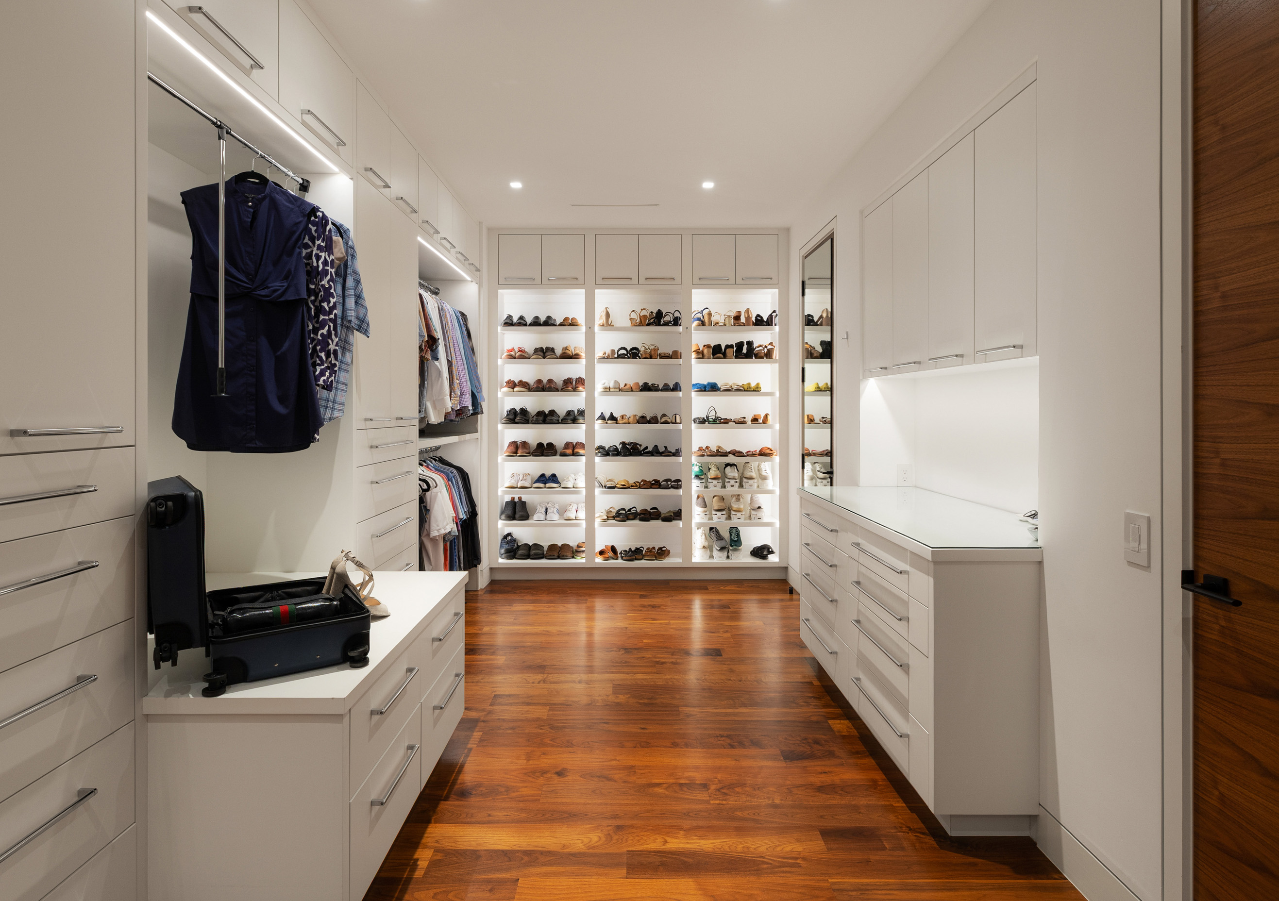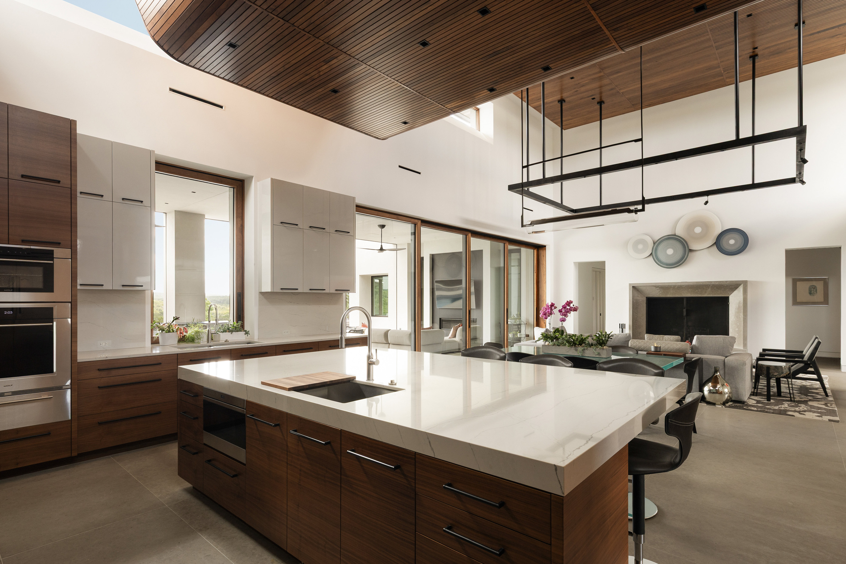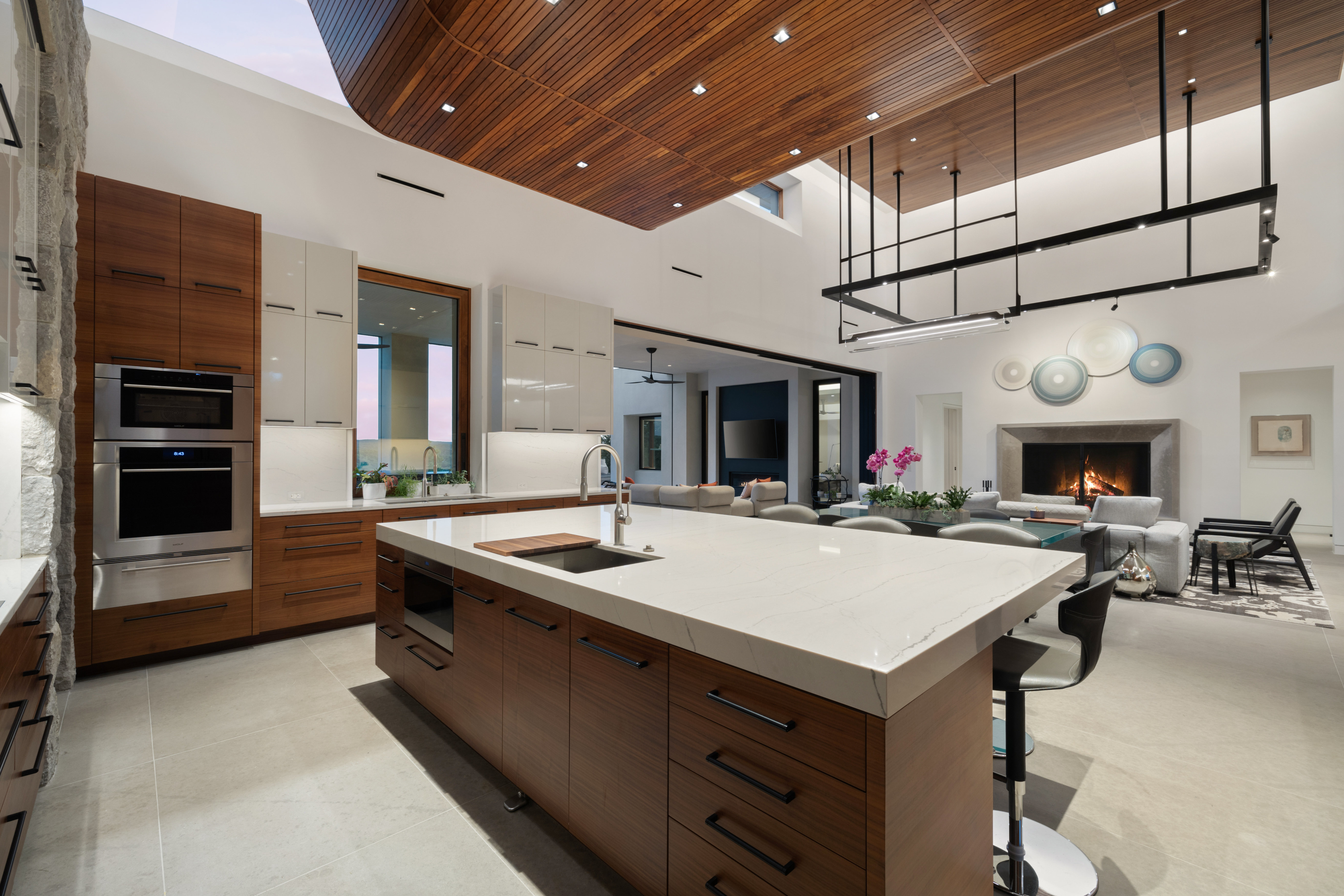 A hidden Beverage Center / Back Kitchen offers an oversized walk-in pantry, extra dishwasher, mitered lacquer cabinetry, and ample prep space—perfect for hosting without cluttering the main space.