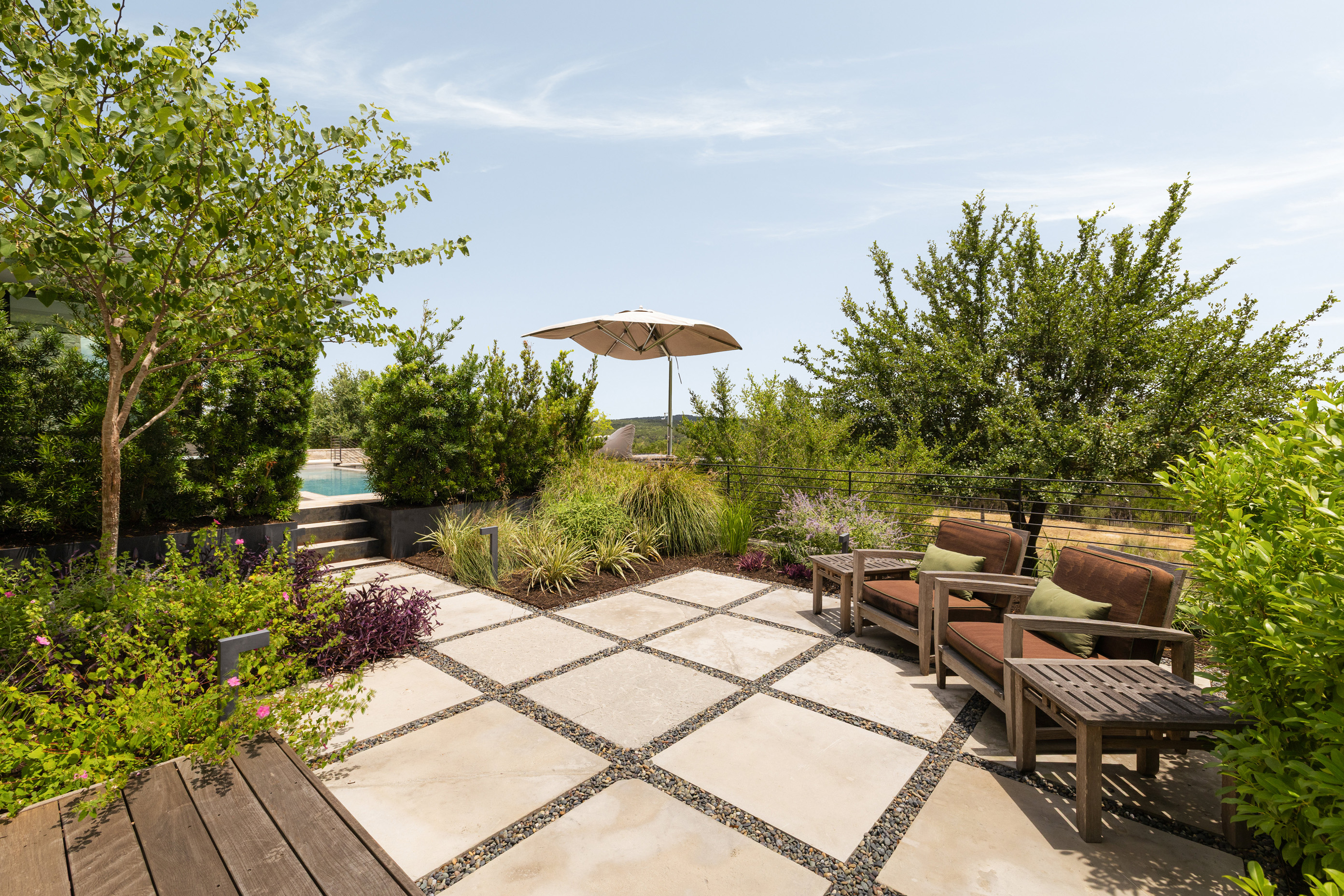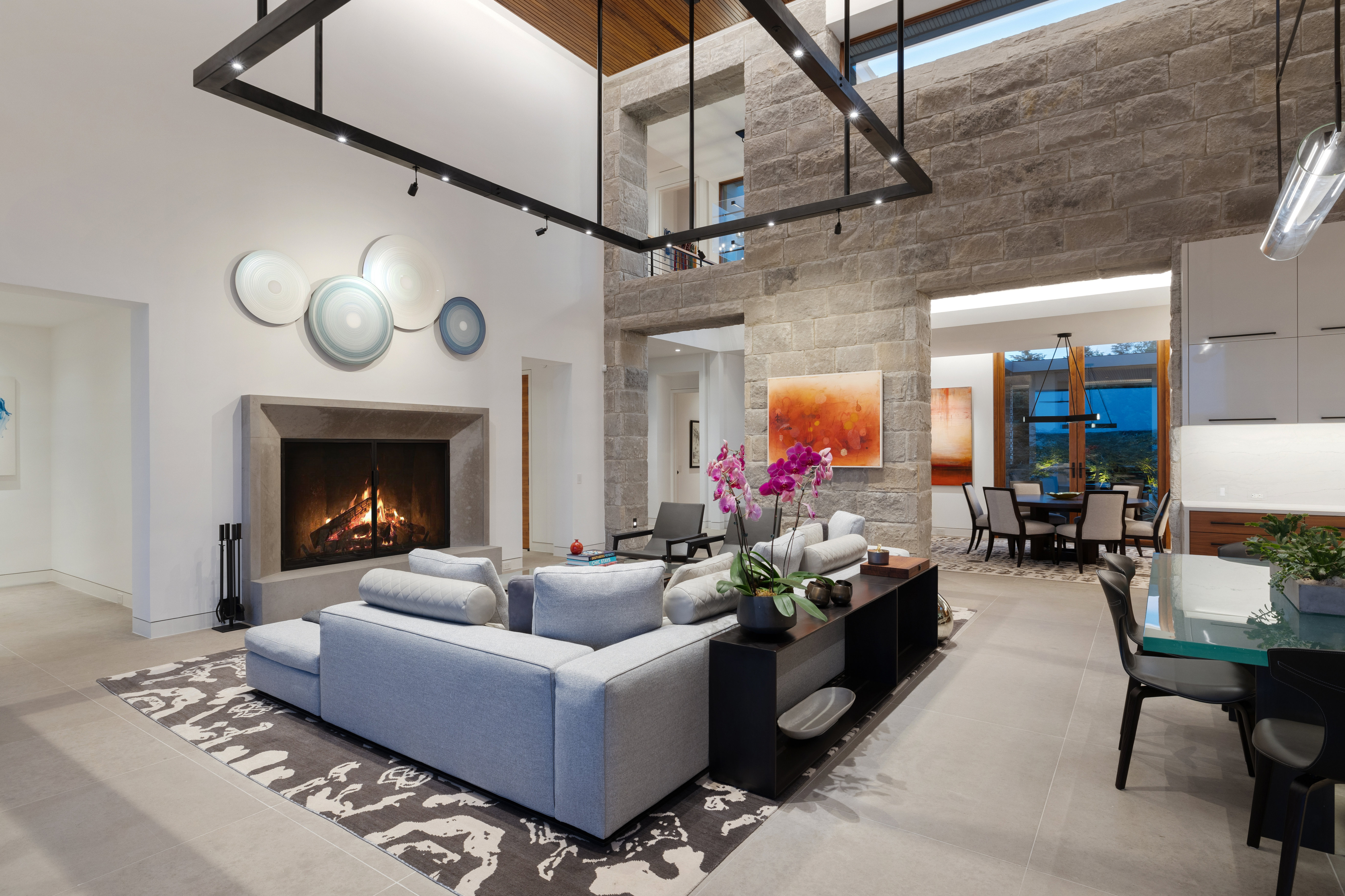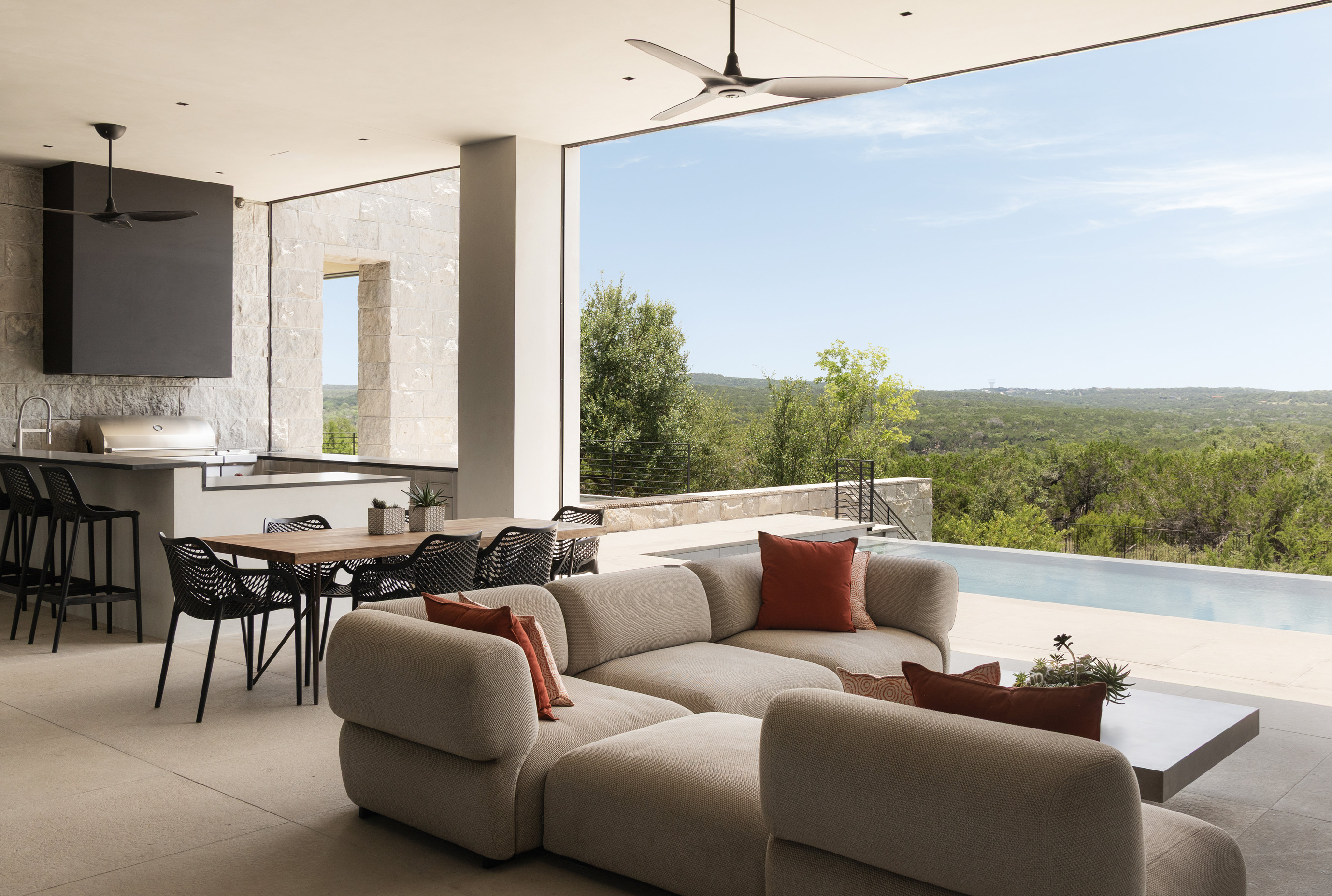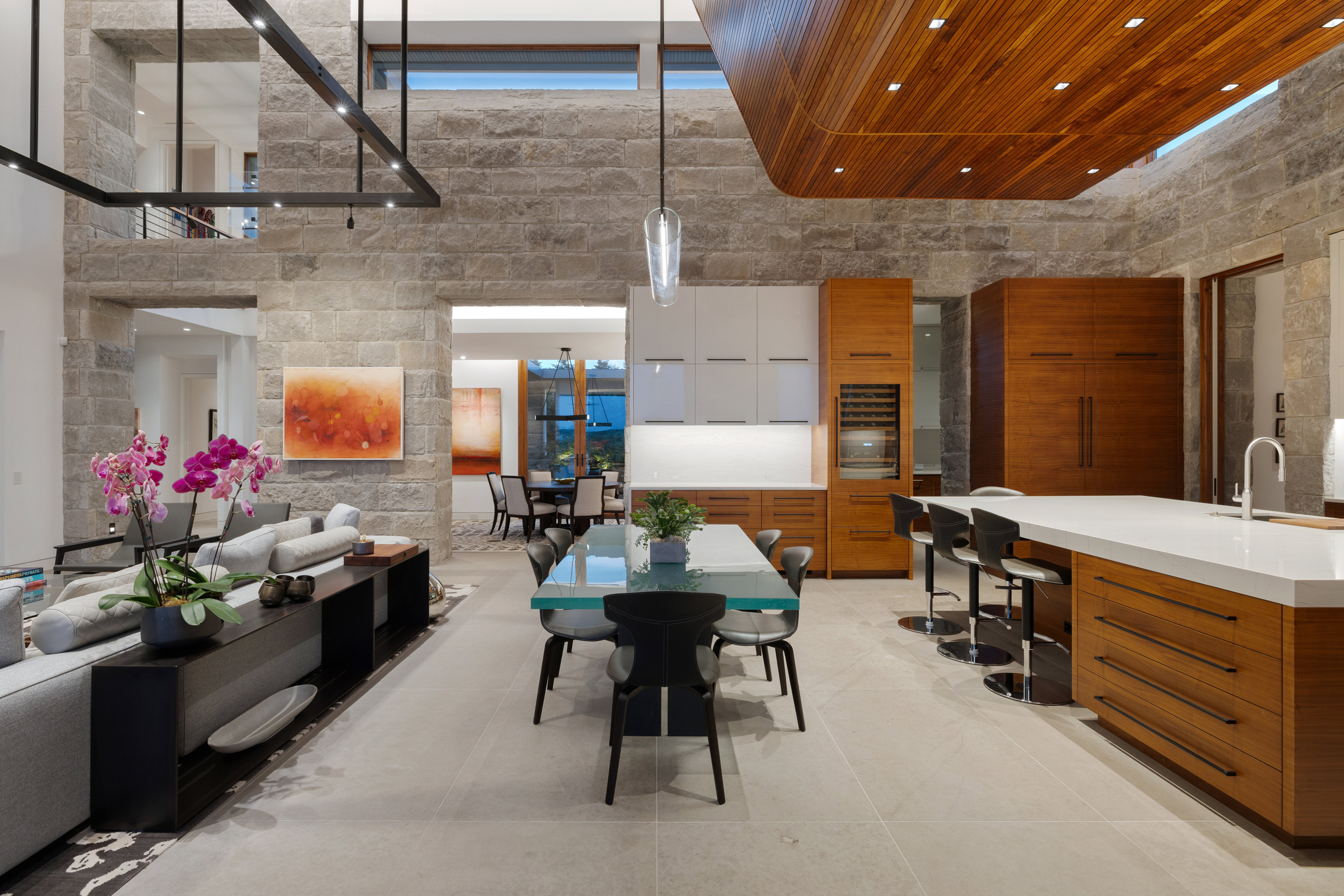 Indoor dining flows effortlessly into multiple entertaining areas, including: