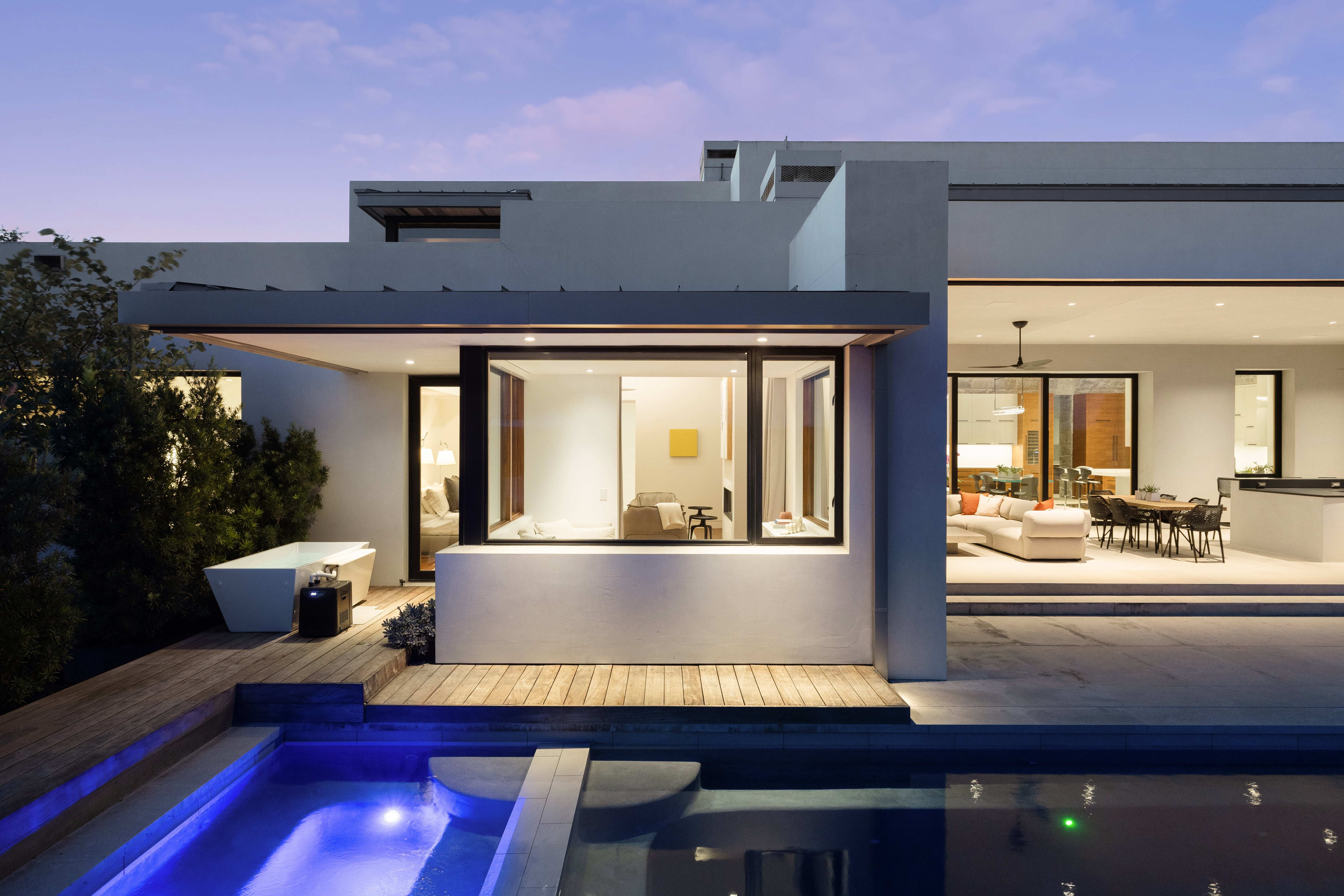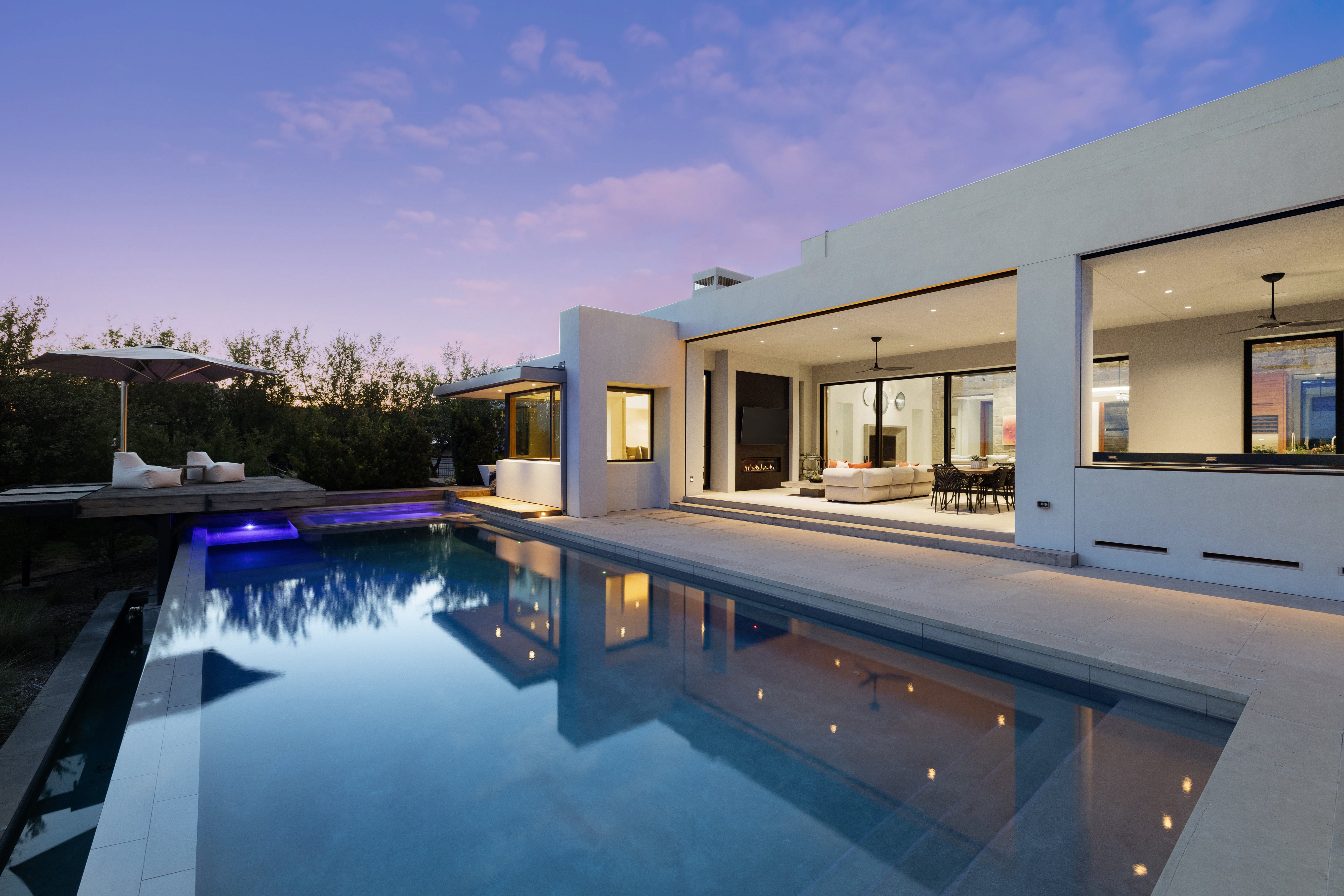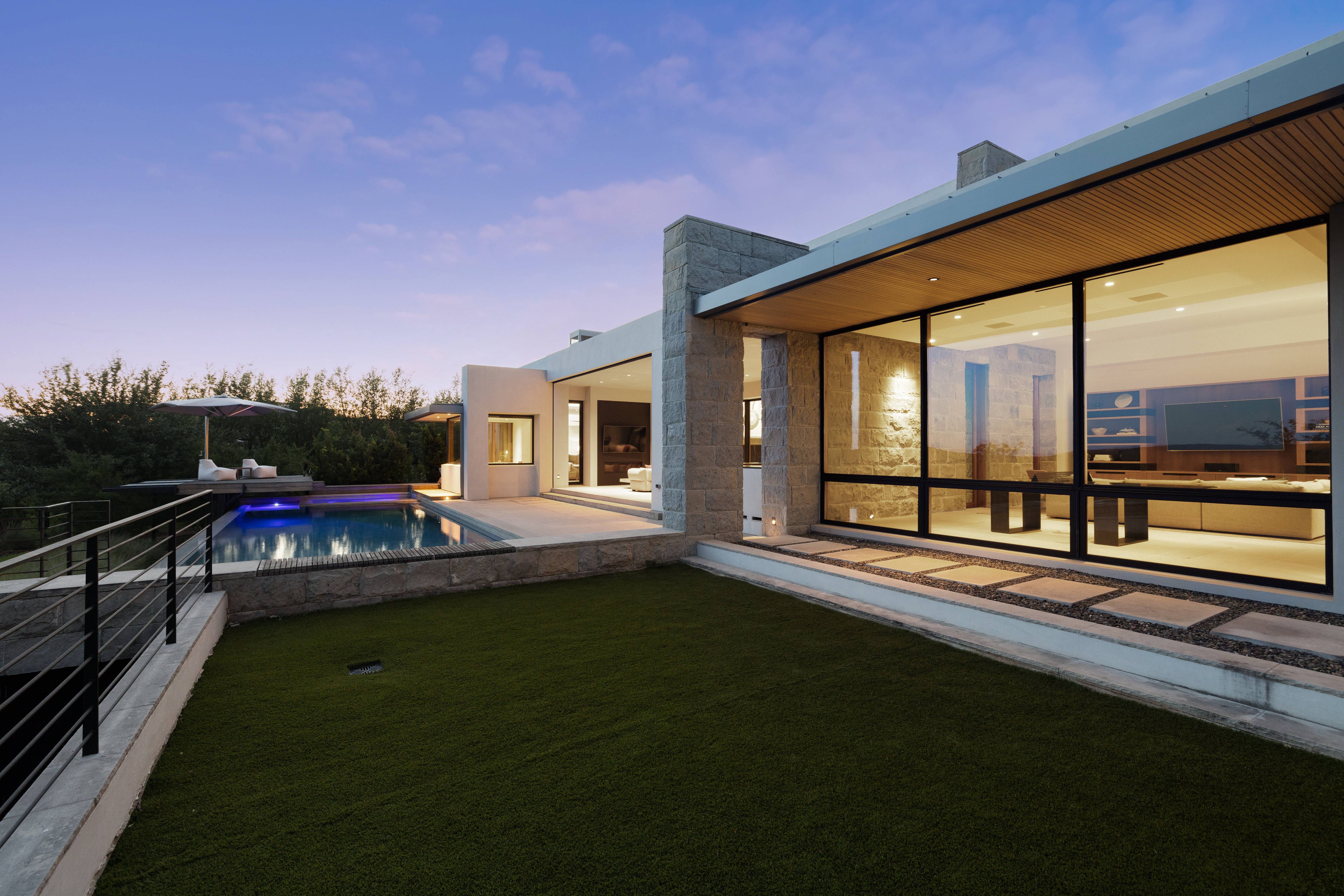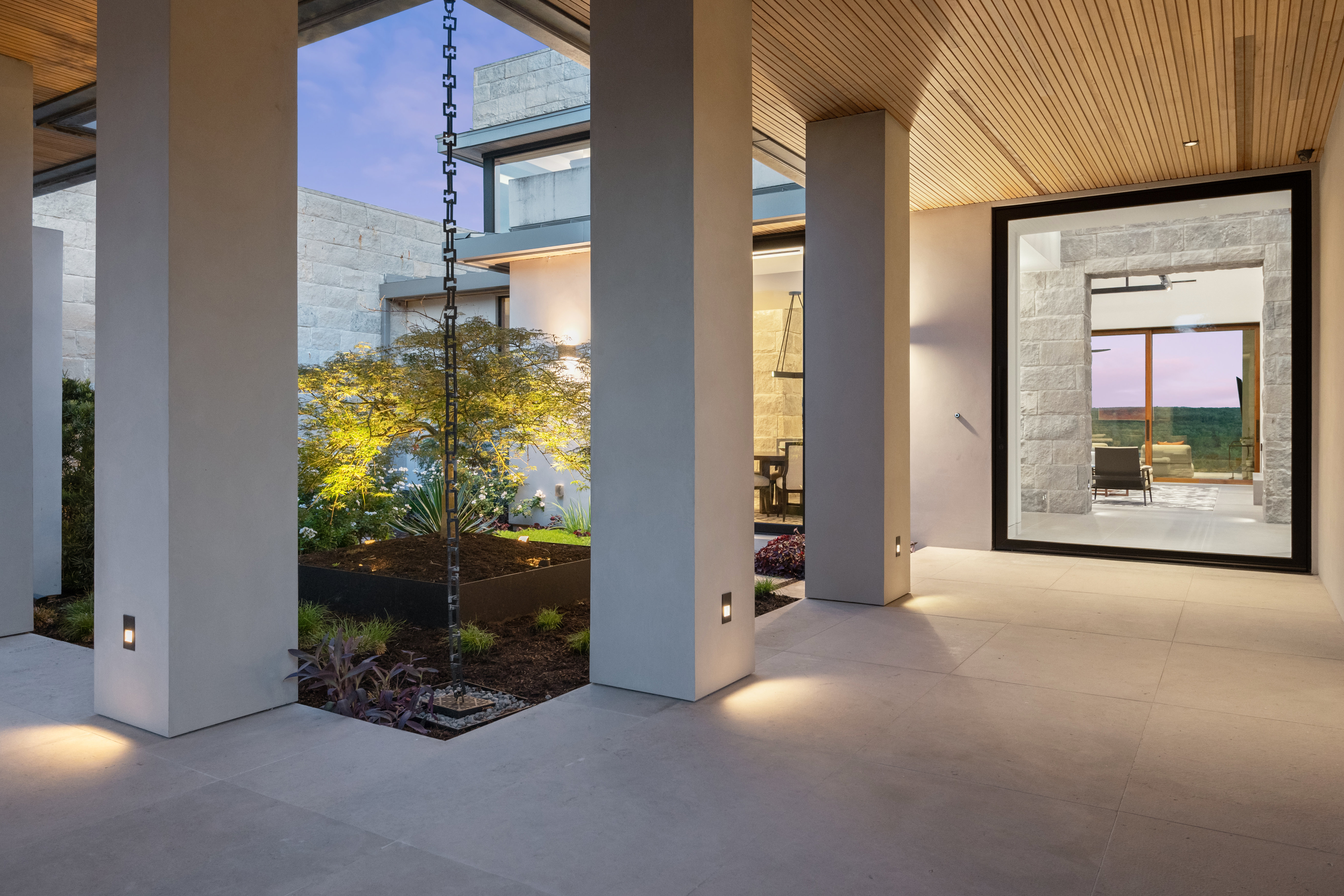 From the moment you step through the 6.5’ x 9’ custom glass pivot door, the home's expansive volume and material palette create a lasting impression. Over 7,300 square feet of thoughtfully designed living space includes 5 bedrooms, 5.5 bathrooms, and a seamless integration of indoor and outdoor living.